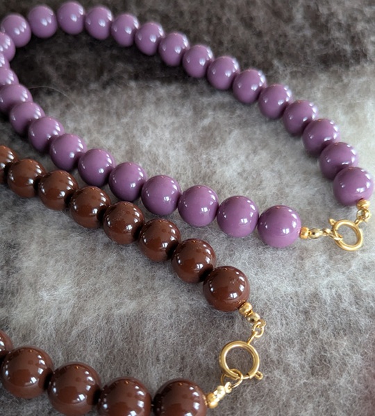 Ketting bold beads 15mm mauve / donker bruin